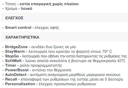 4 επαγωγικές ζώνες μαγειρέματος