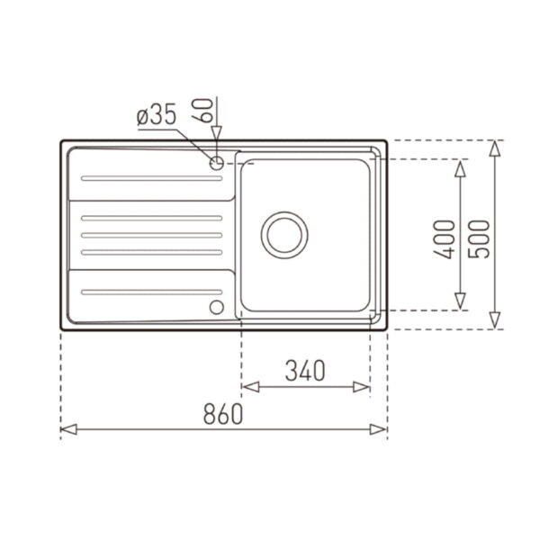 - Διαστάσεις Νεροχύτη: 86 * 50